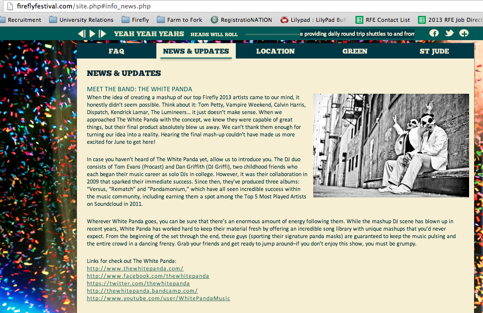 My Work: Event production. Copywriting. Social media writing. Vendor contract negotiation. Recruitment. Customer service.s / Firefly Music Festival